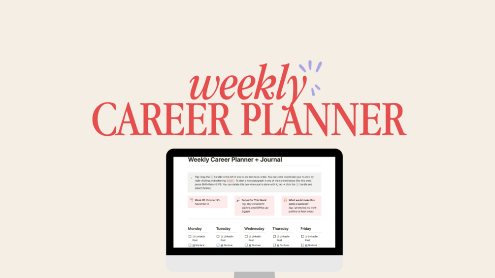 📝 Growth-Oriented Prompts: I strongly believe you can get anything you want in your career if you have a strong personal brand, a warm network, and clarity on what you want. This planner and journal comes loaded with a LinkedIn posting strategy + a networking email template to get your started!